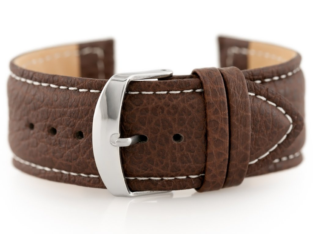 Kožený remienok na hodinky W71 - Tmavohnedý - 24 mm