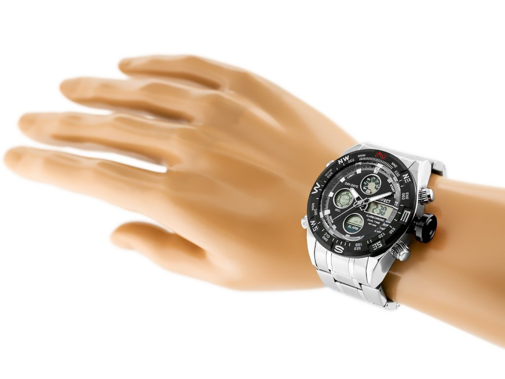 - čierny ciferník, strieborný index