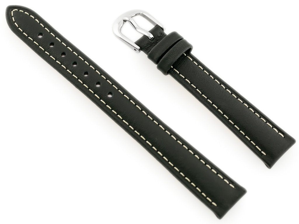 Prírodný čierny kožený opasok s bielym prešívaním. Spona z nerezovej ocele v striebornej farbe.
