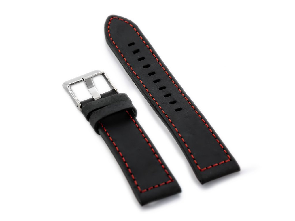 Kožený remienok na hodinky W25 - čierny/červený - 20 mm