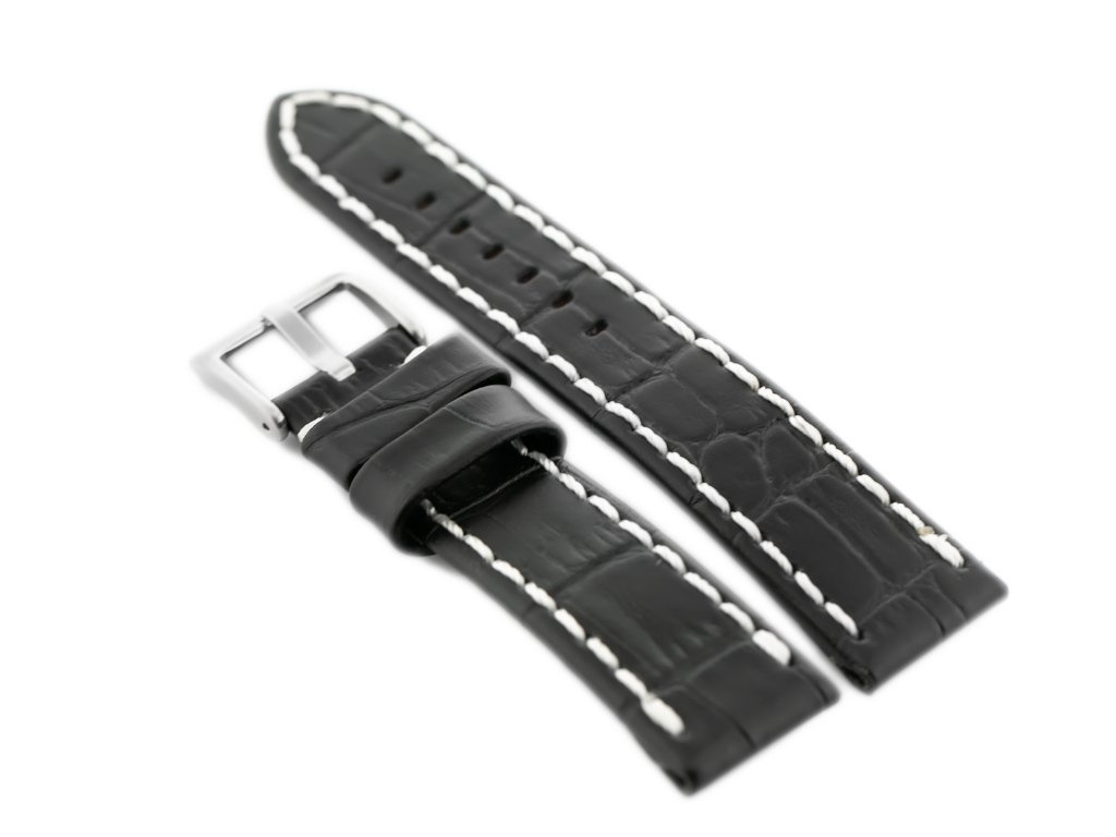 Kožený remienok na hodinky W49 – čierno/biely – 20 mm