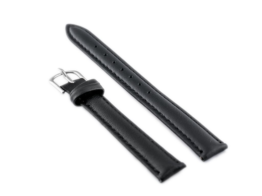 Opasok z prírodnej čiernej kože s prešívaním. Spona z nehrdzavejúcej ocele v striebornej farbe.