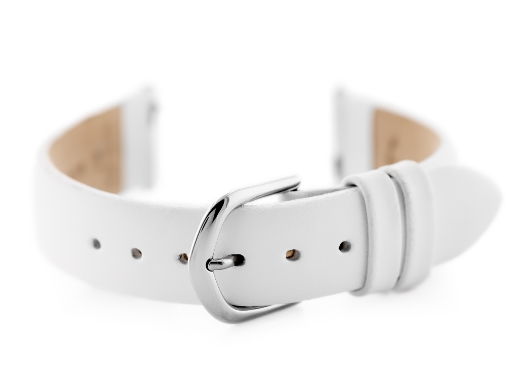 Biely opasok z prírodnej kože. Spona z nehrdzavejúcej ocele striebornej farby.