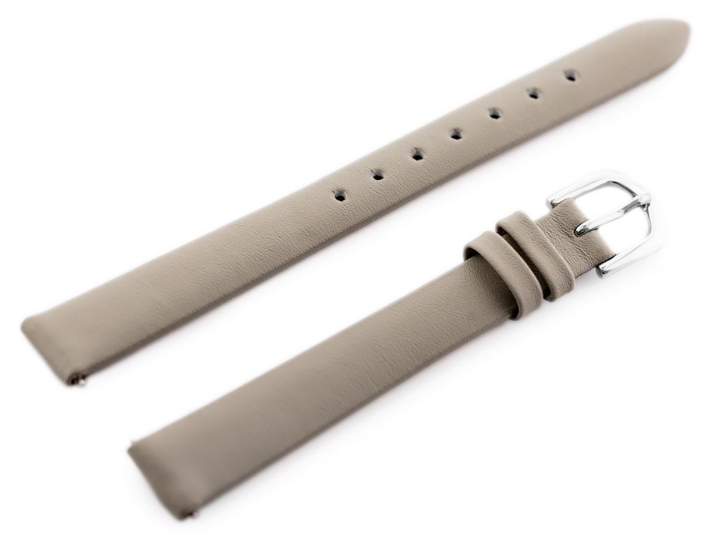 Sivý kožený opasok. Spona z nehrdzavejúcej ocele striebornej farby.
