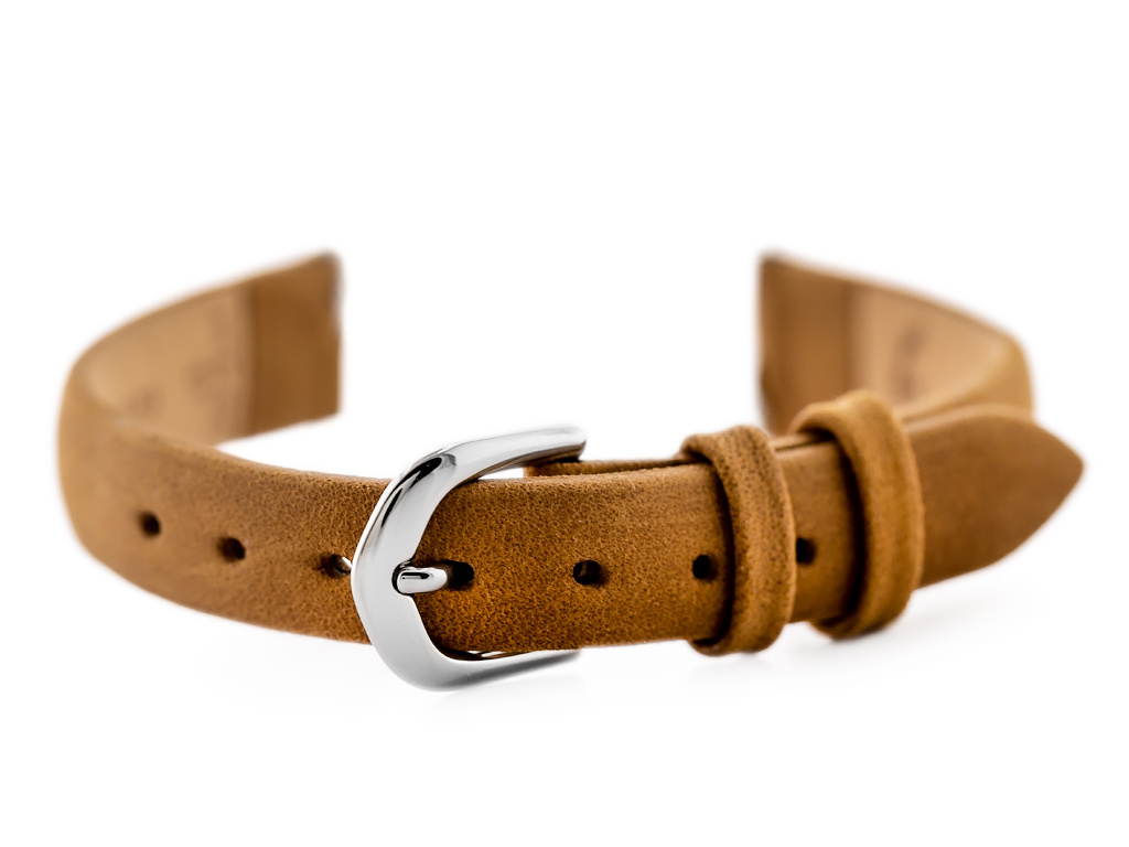 Hnedý kožený opasok. Spona z nehrdzavejúcej ocele striebornej farby.
