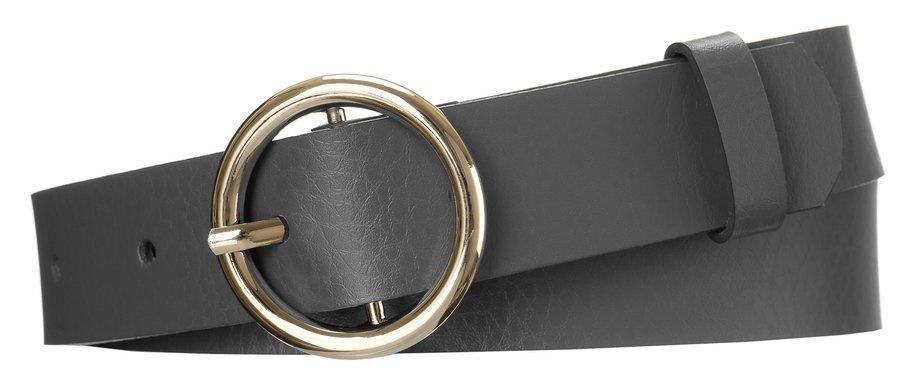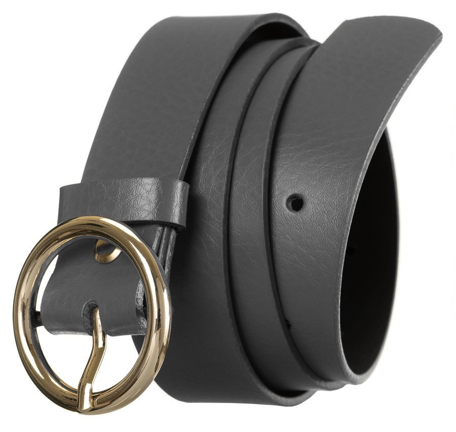 Lesklý, kožený dámsky opasok so zlatou, okrúhlou prackou