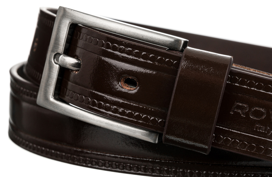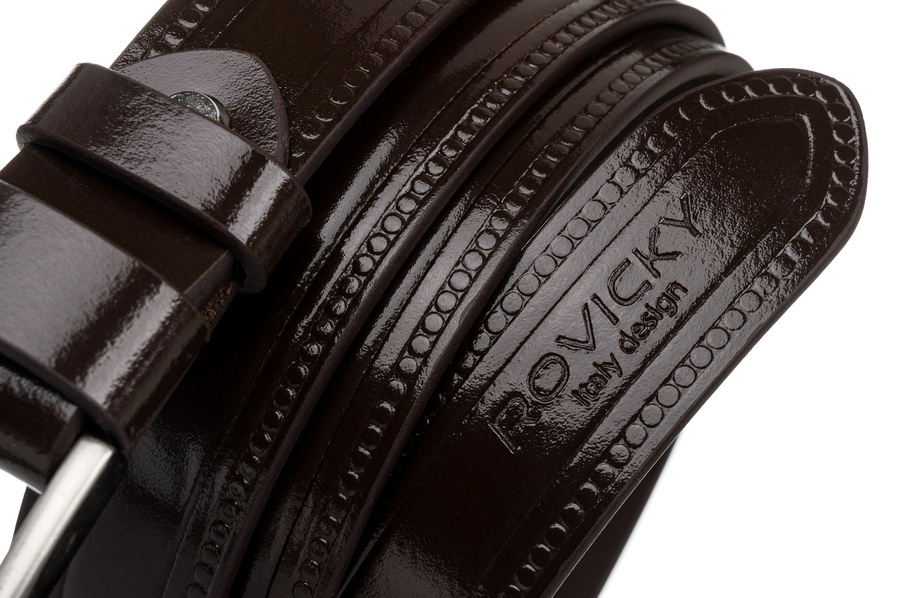 Zdobený pánsky opasok z lakovanej prírodnej lícovej usne