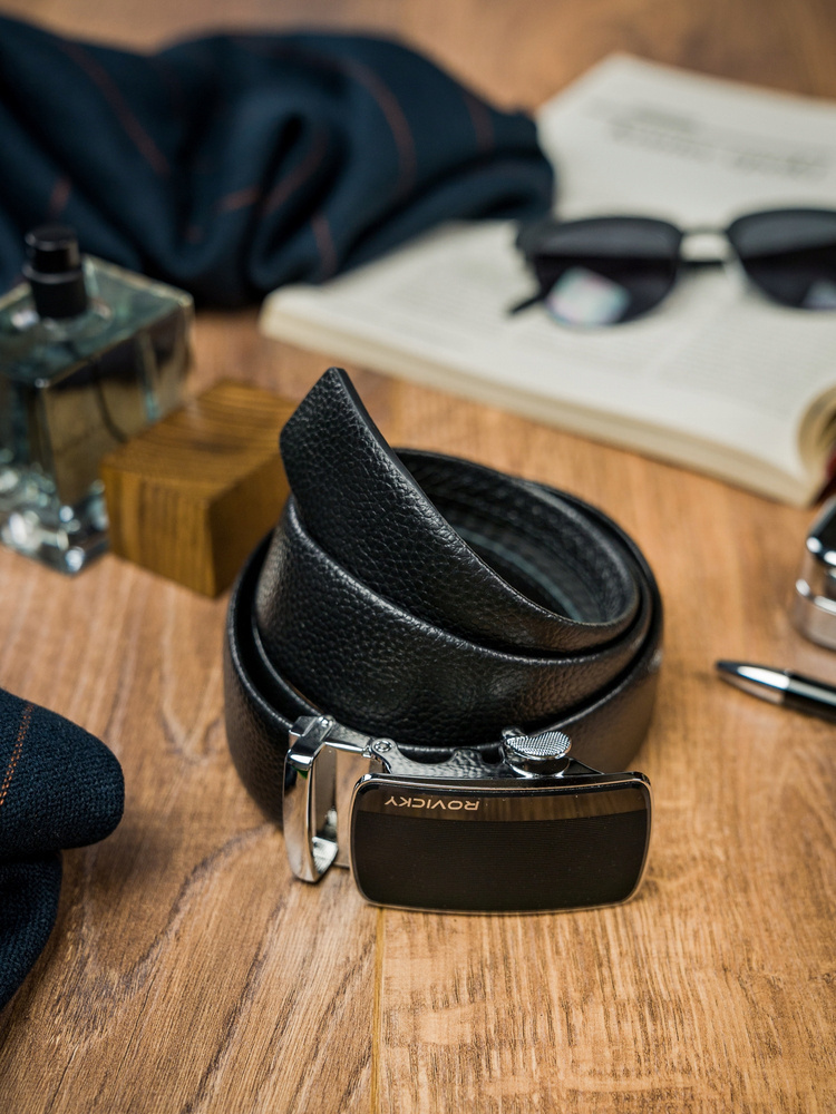 Pánsky kožený opasok s rebrovanou automatickou prackou