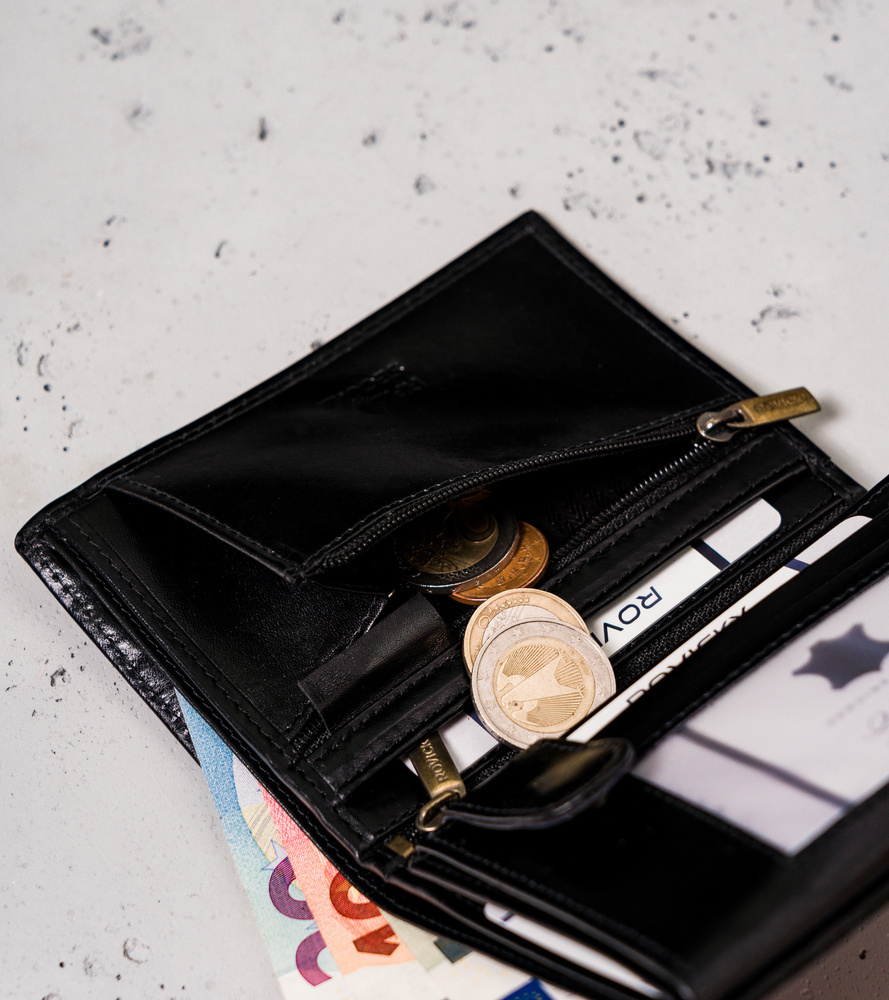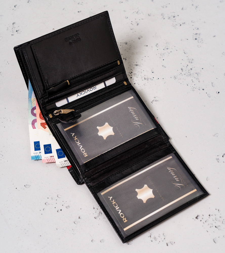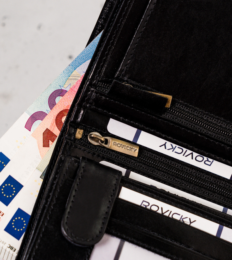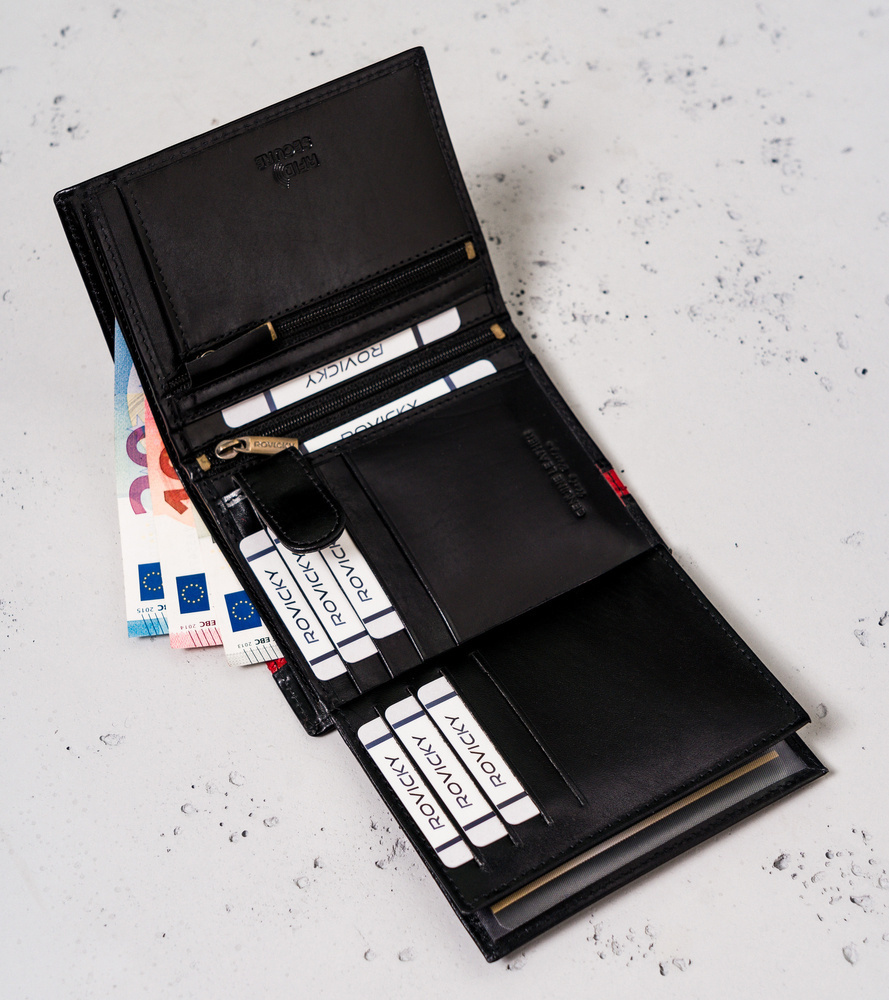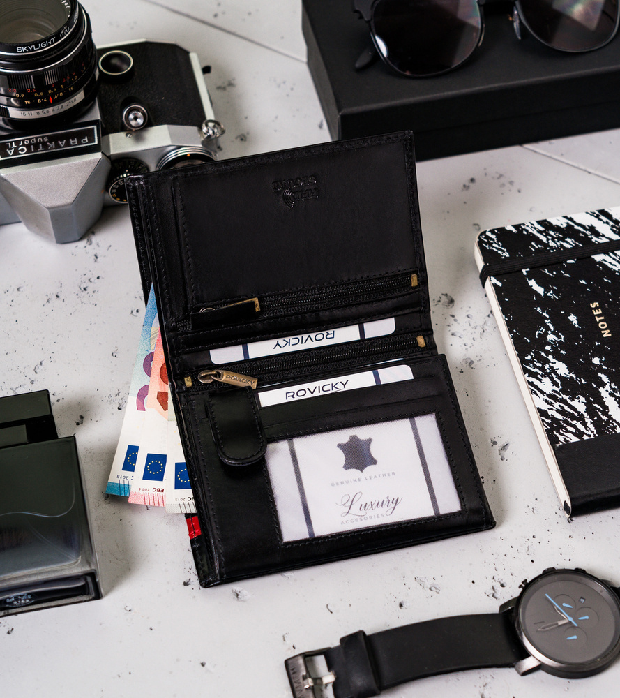 Vertikálna pánska peňaženka s úložným priestorom na zips
