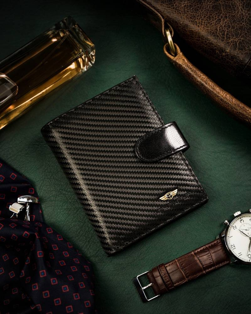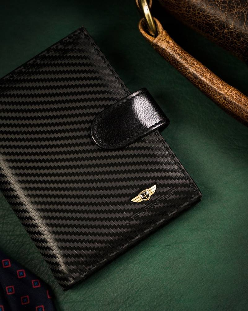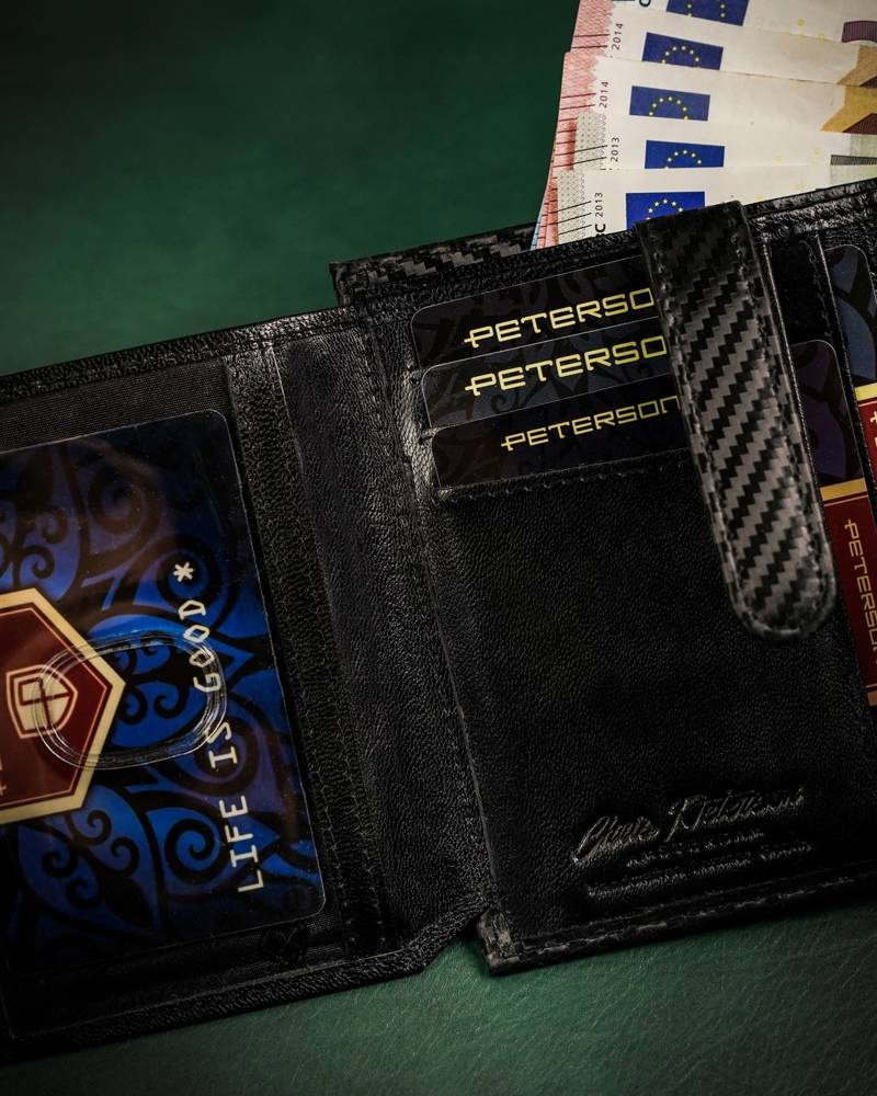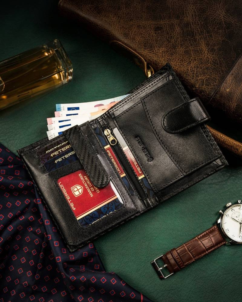 Pánska kožená peňaženka vo vertikálnej orientácii so zapínaním na cvok - Peterson