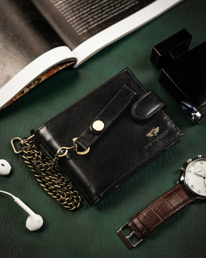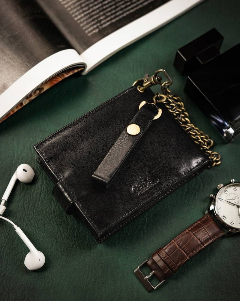 Horizontálna pánska peňaženka z prírodnej kože s retiazkou