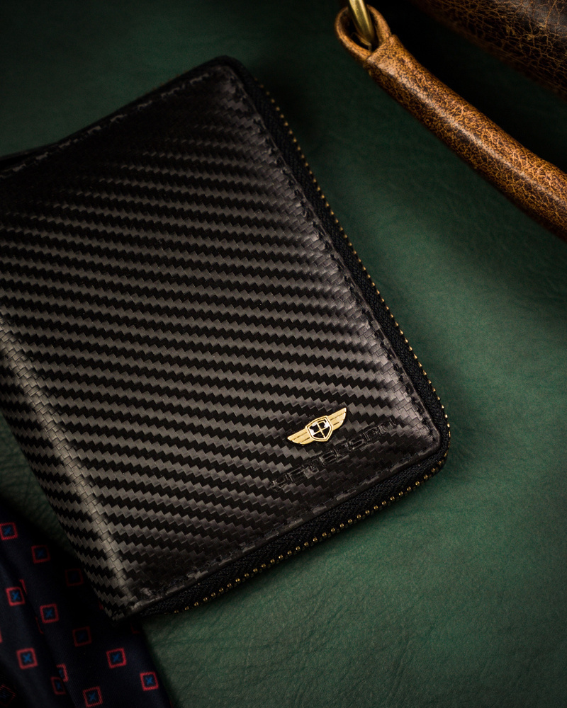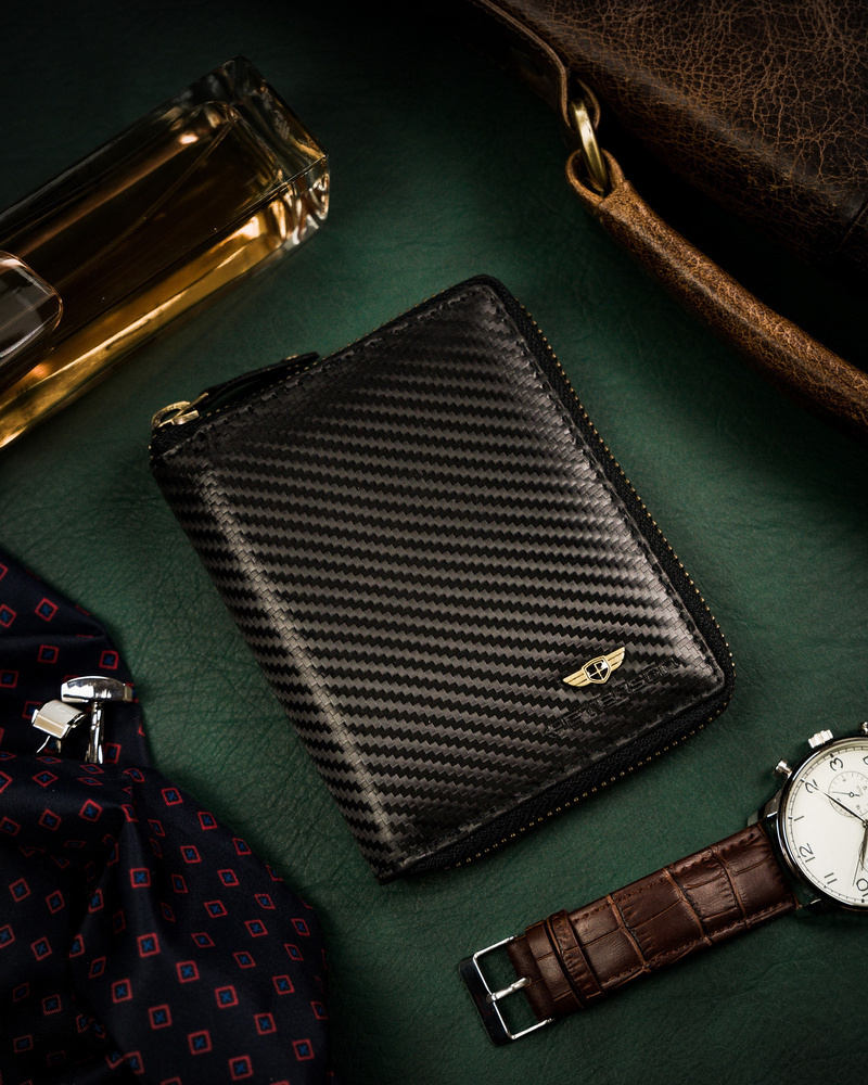 Kompaktná pánska peňaženka na karbónový zips