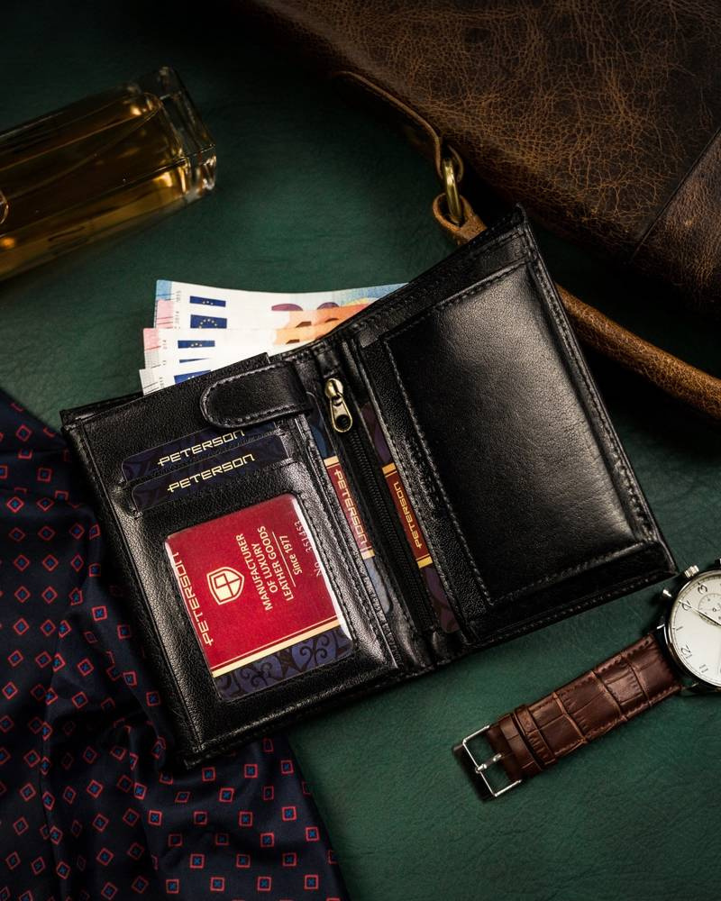 Veľká, kožená pánska peňaženka bez vonkajšej spony
