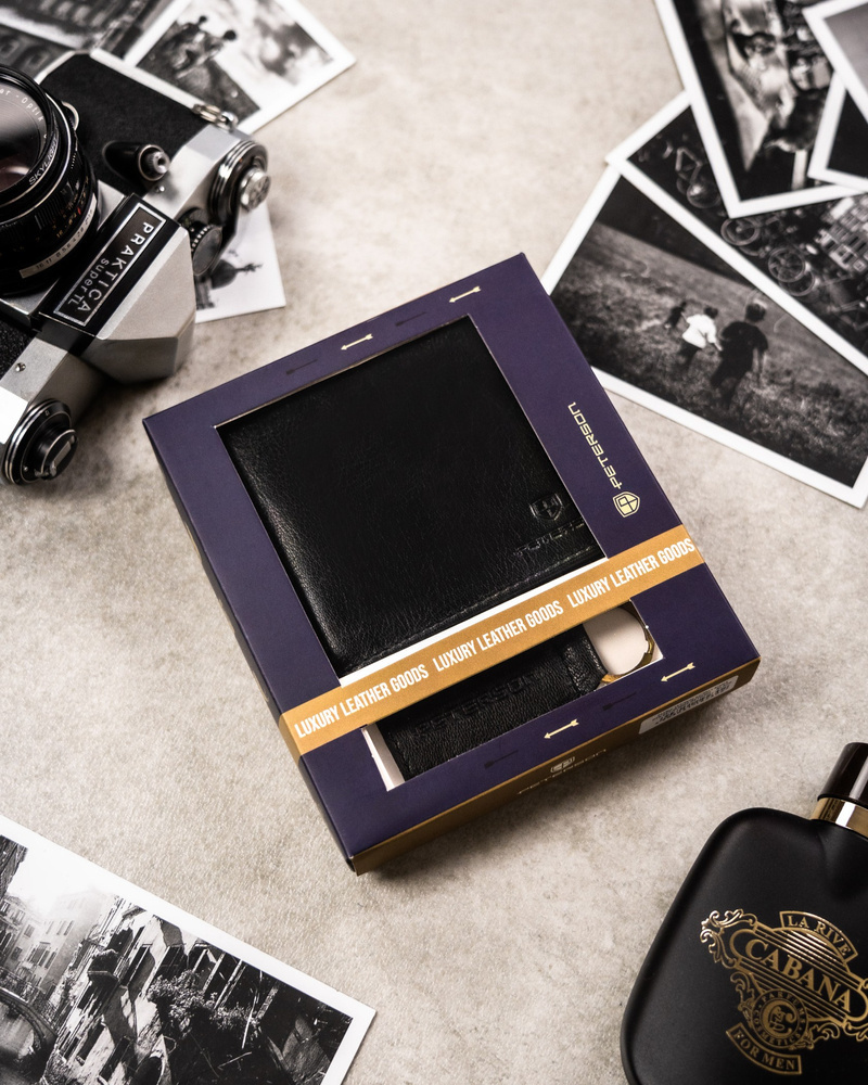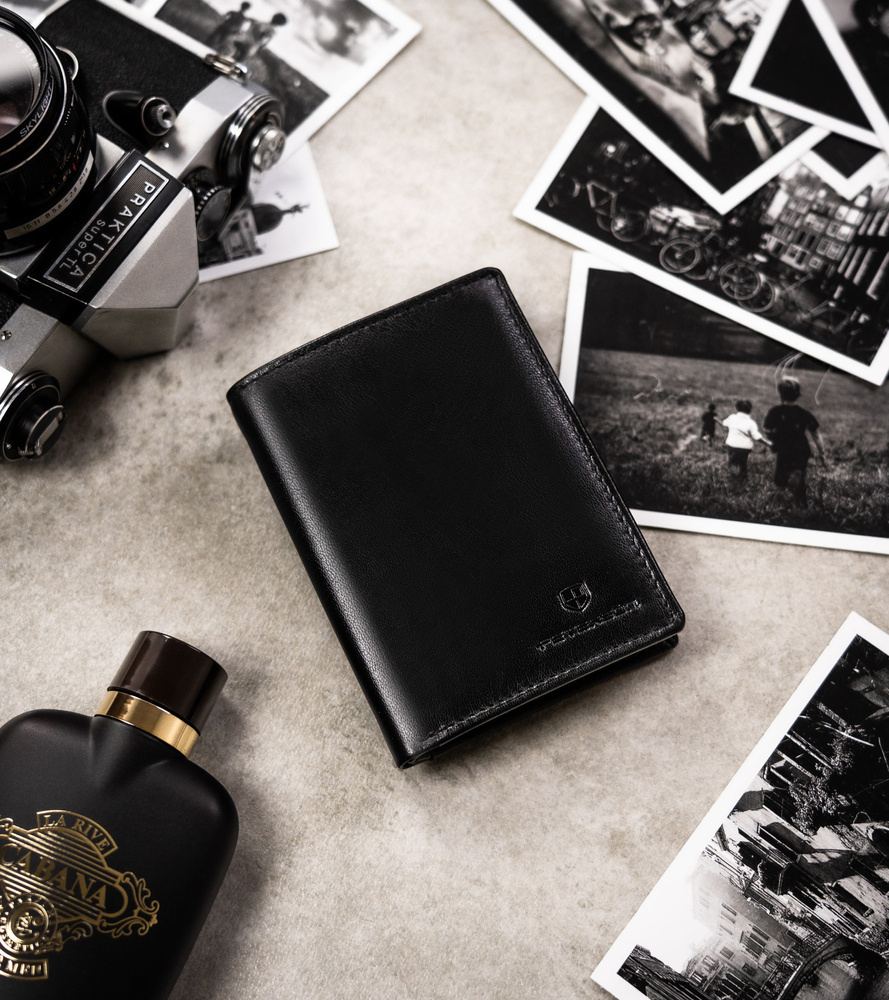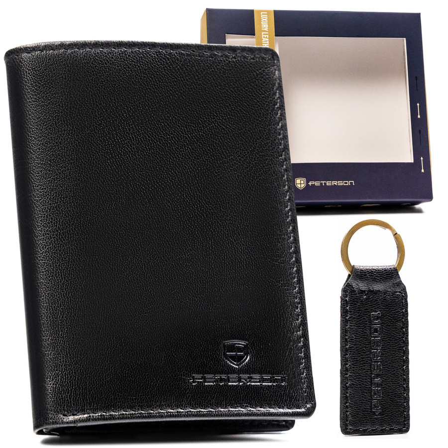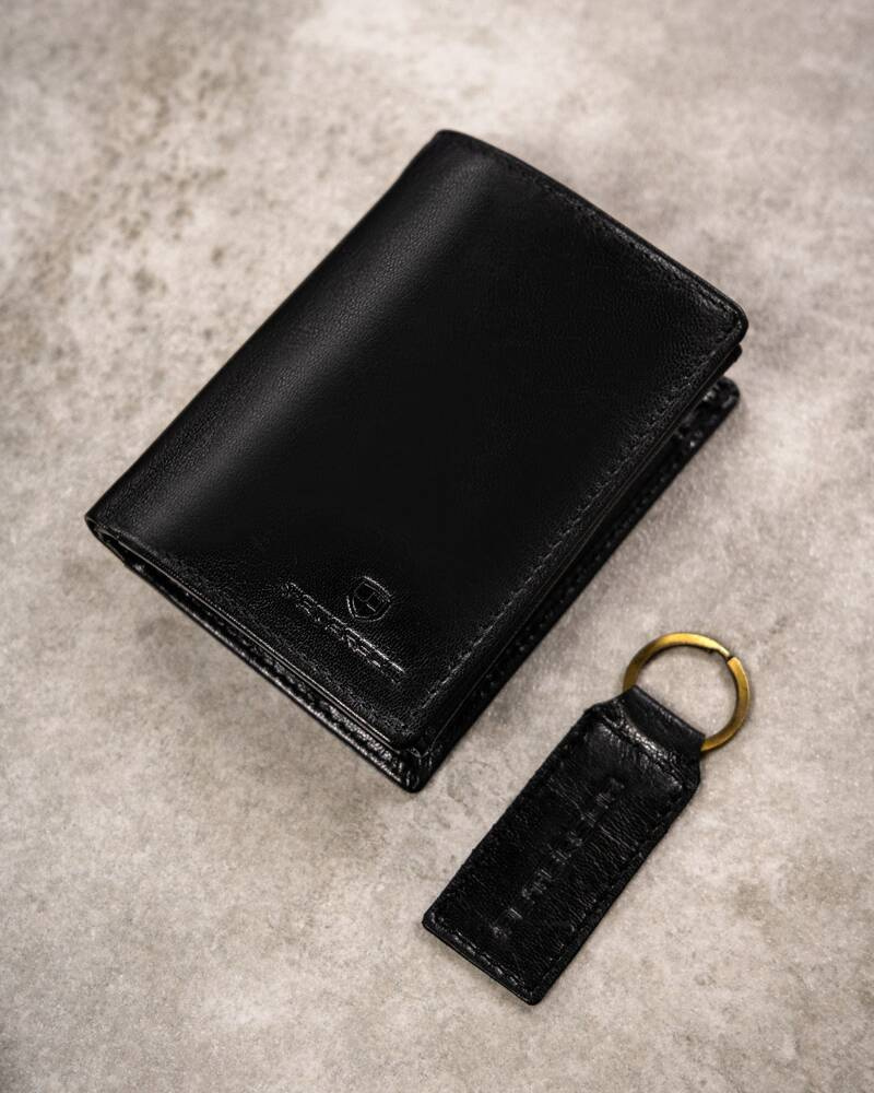 Darčeková sada: vertikálna pánska kožená peňaženka a kľúčenka