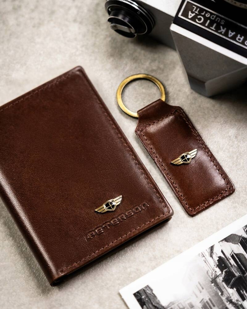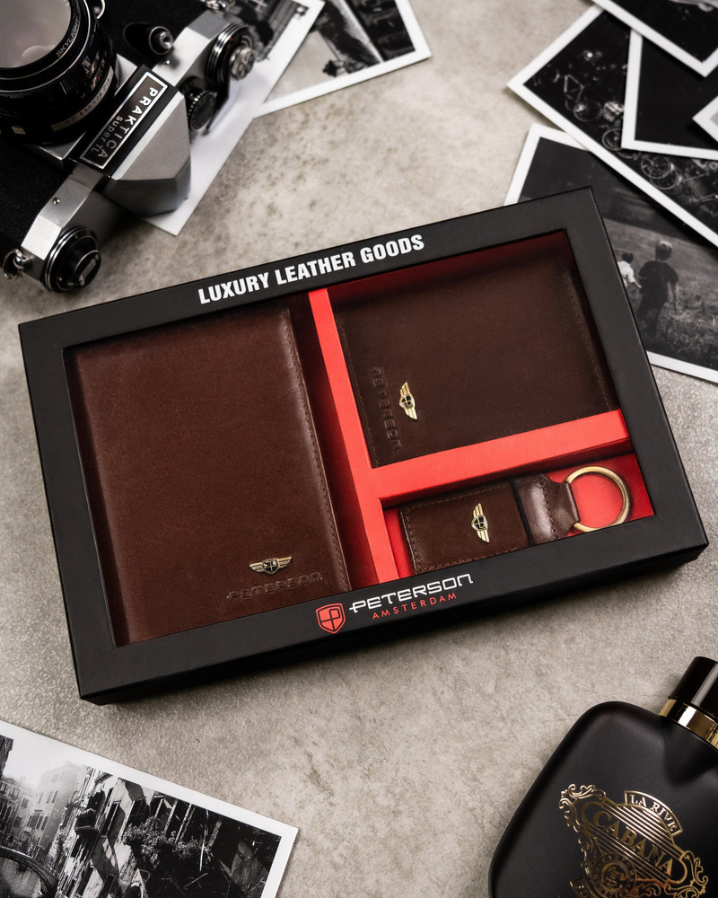 Darčeková sada: pánska kožená peňaženka, puzdro na karty a kľúčenka