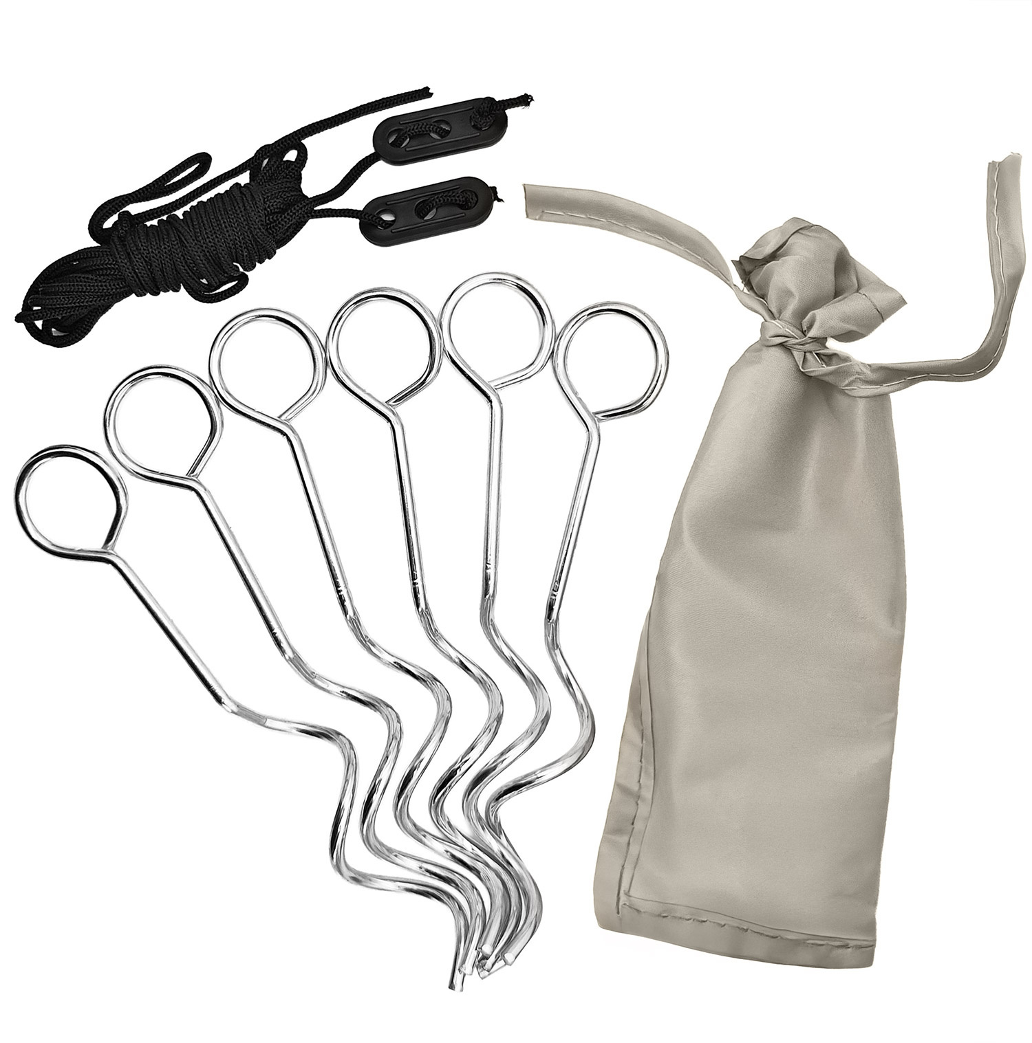 Komplet bo olajšal postavitev šotora, posebej zasnovani žeblji pa ga bodo tudi v močnem vetru obdržali nad tlemi. Vse je shranjeno v posebnem kovčku. Poleg tega je v kompletu tudi torbica z vrvico, da lahko zložen šotor enostavno pritrdite in ga udobno prenašate.