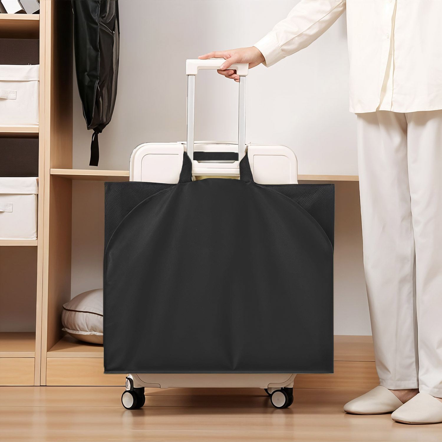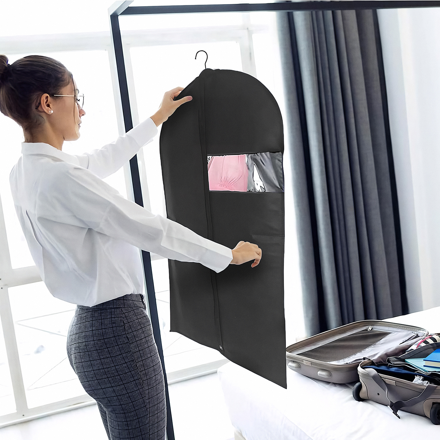 - UNIVERZÁLNA VEĽKOSŤ: obaly štandardnej veľkosti sa hodia na rôzne druhy odevov, od oblekov po kabáty a šaty. Ideálne na doma aj na cesty