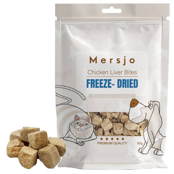 Pochúťka pre psov a mačky – Mrazom sušená kuracia pečeň Mersjo 50g