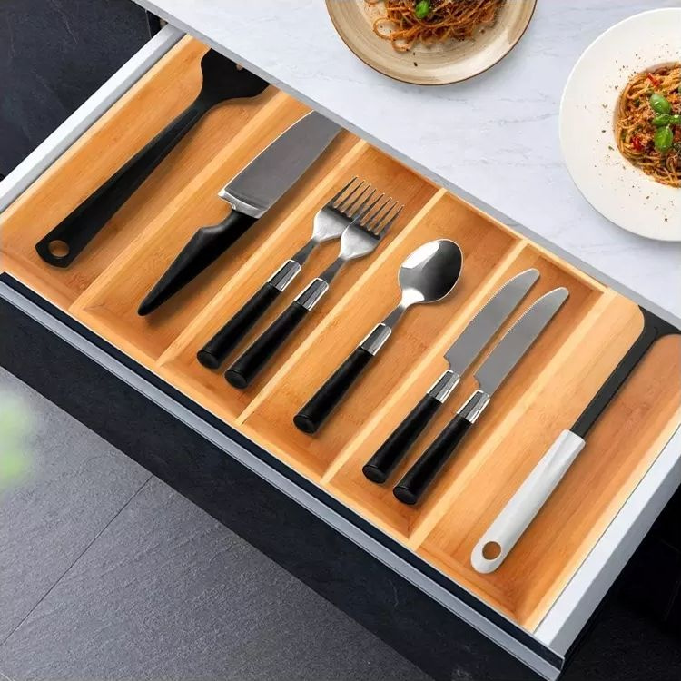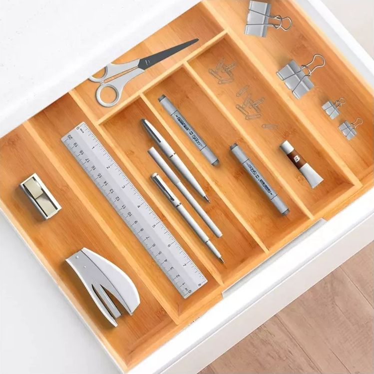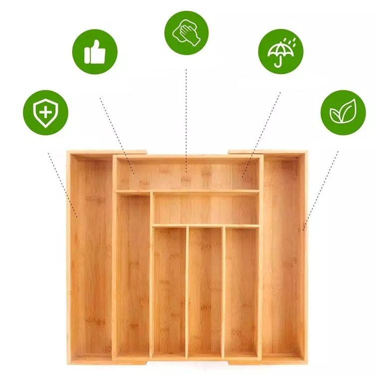 - BAMBUS Vďaka použitiu bambusového dreva má organizér rýchloschnúce vlastnosti. Absorbuje menej baktérií. Bambusové drevo mu dodáva elegantný vzhľad. Môže sa voľne umývať pod tečúcou vodou. Nebudú sa v ňom tvoriť plesne a baktérie.